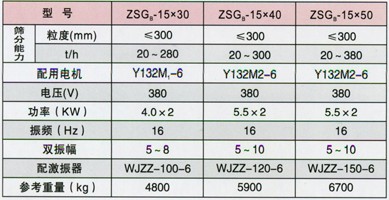 ZSG系列**振動(dòng)篩技術(shù)參數(shù)(配用振動(dòng)電機(jī)):