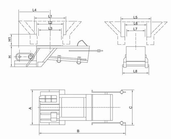 K型往復(fù)式給料機(jī)外形圖及主要外形尺寸: